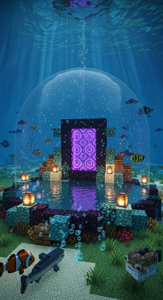 Defy logic by placing your portal beneath the ocean. Build a glass dome or ruin structure underwater with the portal glowing through the water.