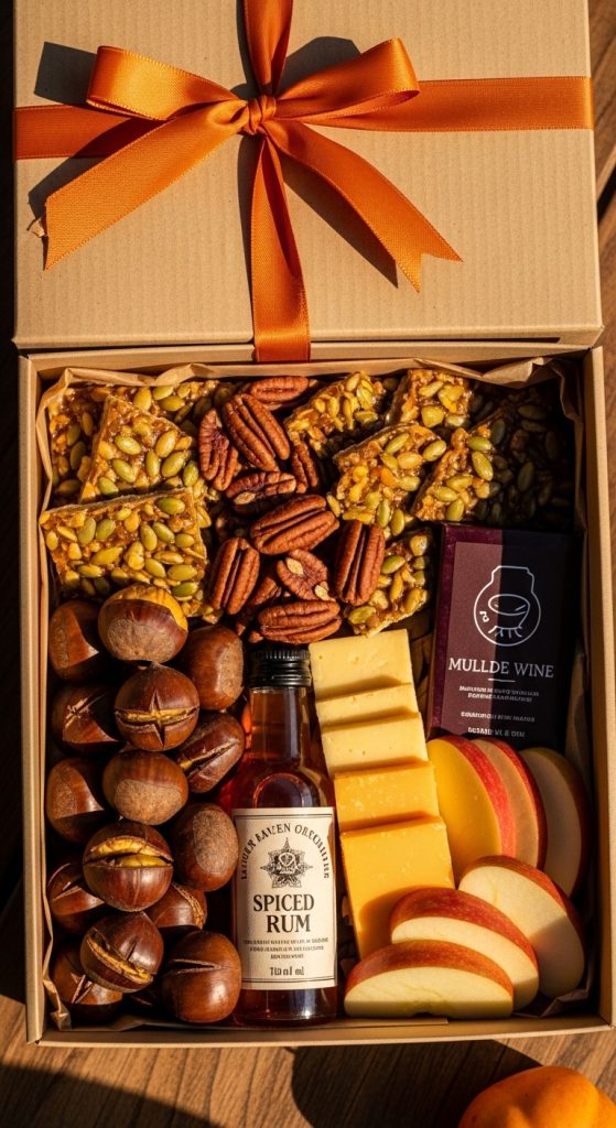 Why it works: It aligns with seasonal trends and flavours, making the snack box feel timely and thoughtful. Adults appreciate a curated seasonal experience rather than generic snacks.