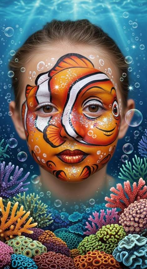 - Trendy twist: Clownfish surrounded by corals, bubbles, and seashell highlights.