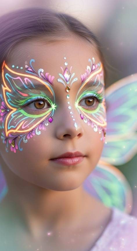 Butterflies are a universal favorite, especially among younger kids. The wings’ symmetry offers the perfect canvas for colorful artistry. Modern butterfly face painting adds glitter, neon highlights, and pastel shades that create a magical effect.
