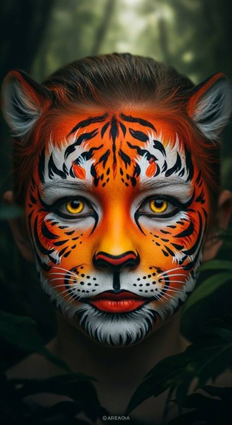 A tiger face never goes out of style. It’s bold, eye-catching, and gives kids a chance to roar and play the role. Instead of the classic orange-and-black stripes, trendy versions include white tigers, neon-colored stripes, or even glitter tigers.