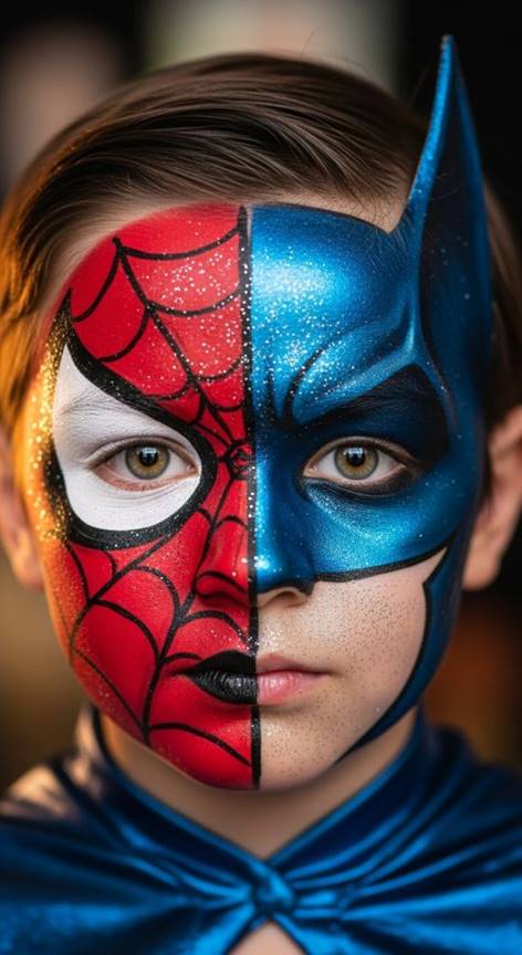 Kids adore superheroes, and face painting allows them to instantly transform into their favorite hero without costumes. Spider-Man, Batman, or even custom “DIY superheroes” are popular choices.